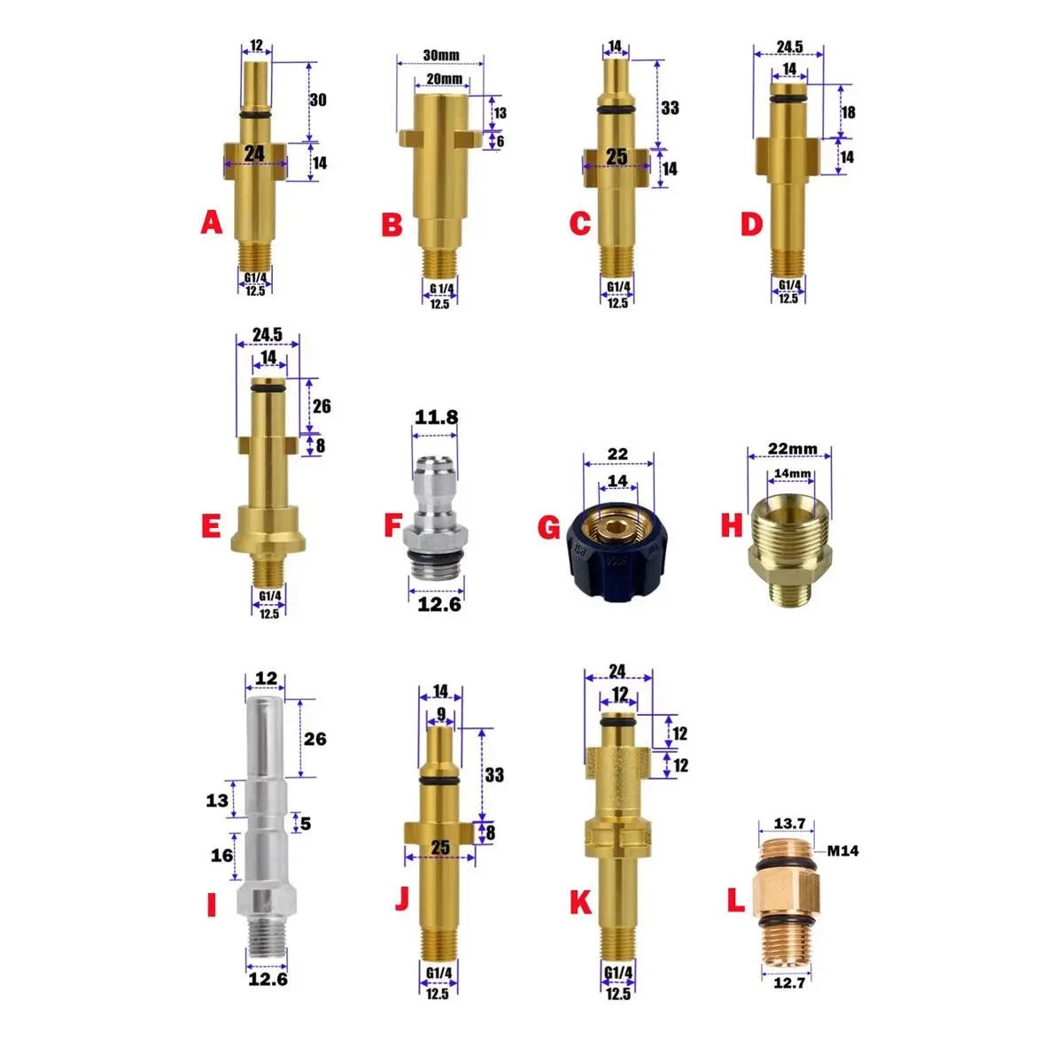 - Modell G: Für Waschpistolen mit M22/14 mm Innengewinde, z.B. einige Karcher HD/HDS (NICHT Einfach Kraft) und einige andere.