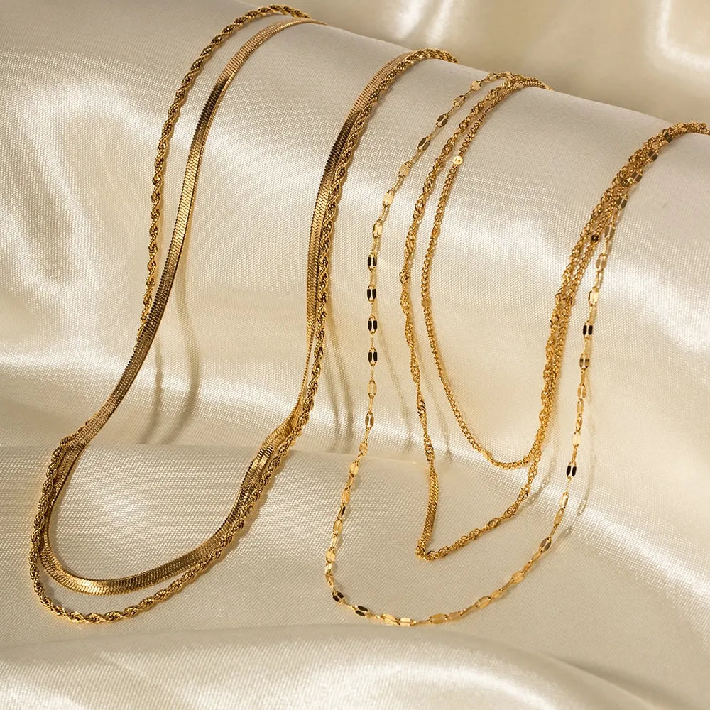 Verleihen Sie Ihrem Outfit einen Hauch von Luxus und setzen Sie sich mit diesen trendigen Edelstahl-Halsketten in Goldfarbe gekonnt in Szene. Egal ob im Büro, beim Abendessen oder in Ihrer Freizeit – diese Halsketten sind Ihre perfekte Begleitung. Bestellen Sie noch heute und erleben Sie, wie diese atemberaubenden Schmuckstücke Ihre Persönlichkeit und Ihren Stil auf ein neues Level heben.